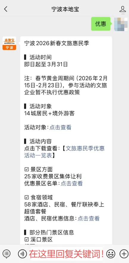 即日起至3月31日!宁波2026新春文旅惠民季来了!景区半价、酒店餐馆优惠……