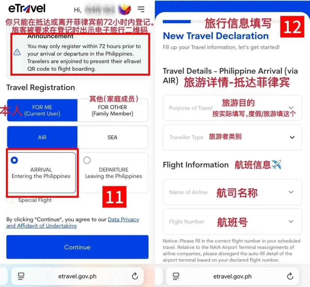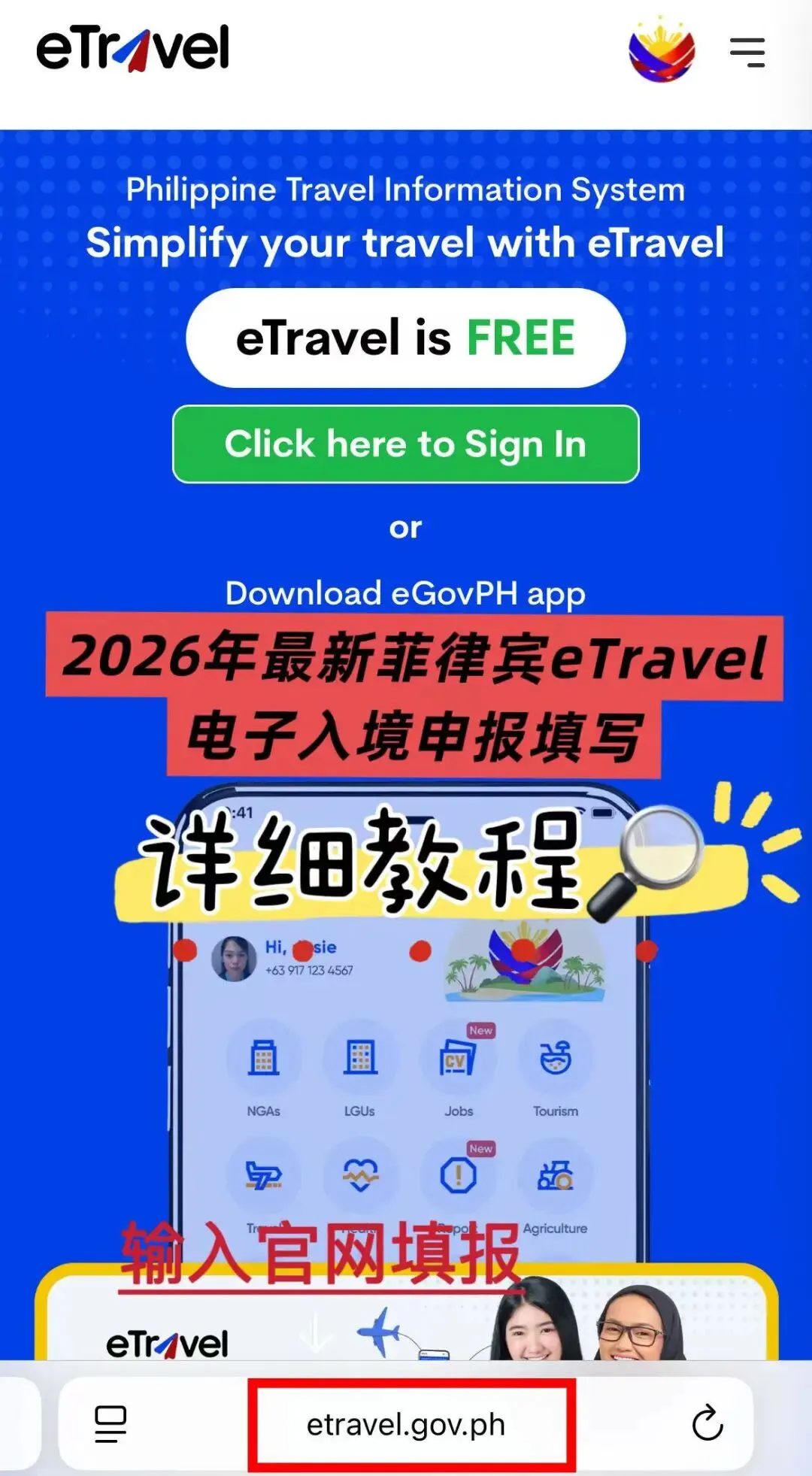 Etravel申报码:出发前3天内,在菲律宾官方系(https://etravel.gov.ph)完成线上登记,并截图保存生成的二维码,这项是免费且必须的,淘宝有付费代填。