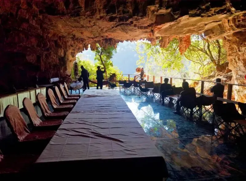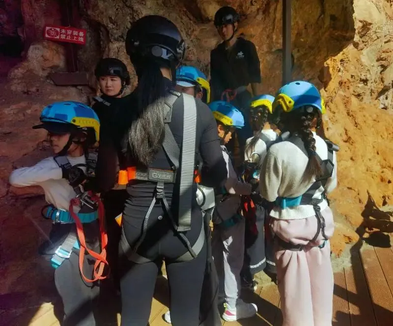 姑娘洞飞拉达七座不同难度的钢索桥串联起黑暗与奇观,岩壁上的水滴“滴答”作响,在空旷的洞穴里回荡。