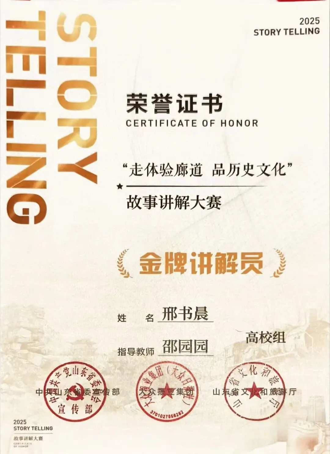 学院团委秉持“以赛促学”理念,常态化开展微宣讲大赛、导游大赛、思凝微课展示、主题演讲、经典诵读等系列赛事。构建“校级—省级—国家级”三级竞赛参与体系,整合创新创业、社会实践等多元资源,全年组织500余人次参与各级各类竞赛。组建专业教师指导团队,以“全流程、精准化、个性化”模式提供“一对一”指导,形成“全员参与、层层递进、以赛促学”的良好氛围。竞赛成果显著,学院不仅斩获省级奖项多项,更摘得“走体验廊道 品历史文化”故事讲解大赛金奖等奖项,充分展现出学院学子过硬的专业素养,彰显了学院以赛育人的扎实成效。