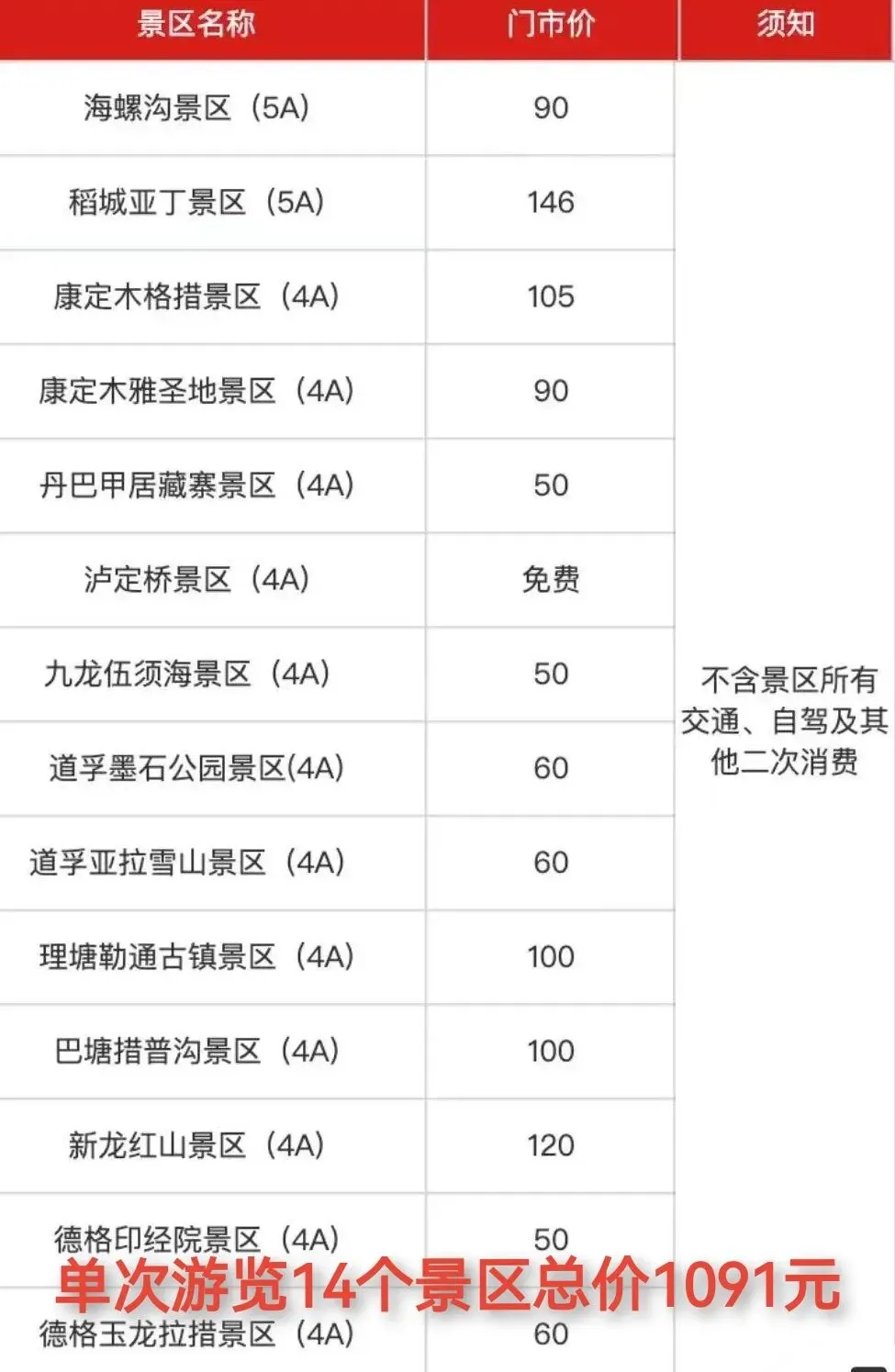 甘孜州14个景区,单次浏览总价1091元,打包成14个景区终身卡和单个景区终身卡。