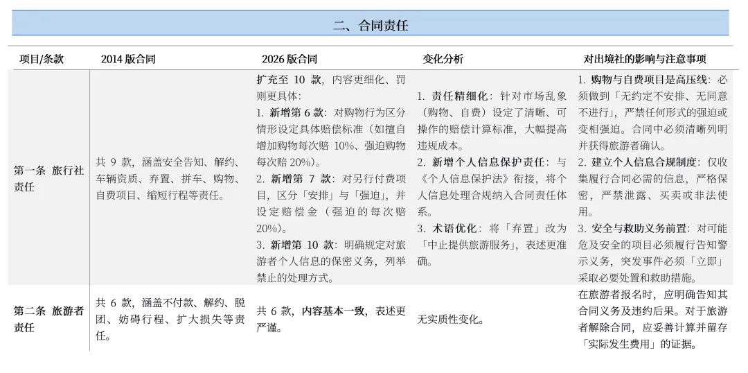 之前,我们对《团队境内旅游合同(示范文本)》新旧合同示范文本进行了逐条对比,系统分析(详见新旧版《团队境内旅游合同(示范文本)》对比分析)。