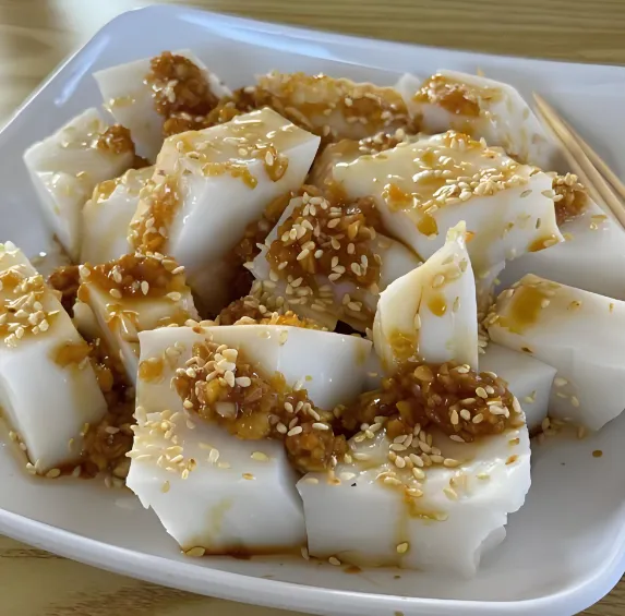 第三美食:茂名簸箕炊这是用簸箕蒸出来的米浆,层层叠叠,像千层糕。切成小块,淋上芝麻酱和香油,入口滑嫩,满口米香。这是路边摊的王者,几块钱就能买到的快乐,一定要尝尝。