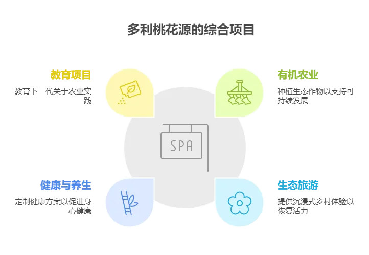作为农业与康养、文旅融合的范例,多利桃花源打造了集有机农业、田园度假、养生养老于一体的综合性项目。