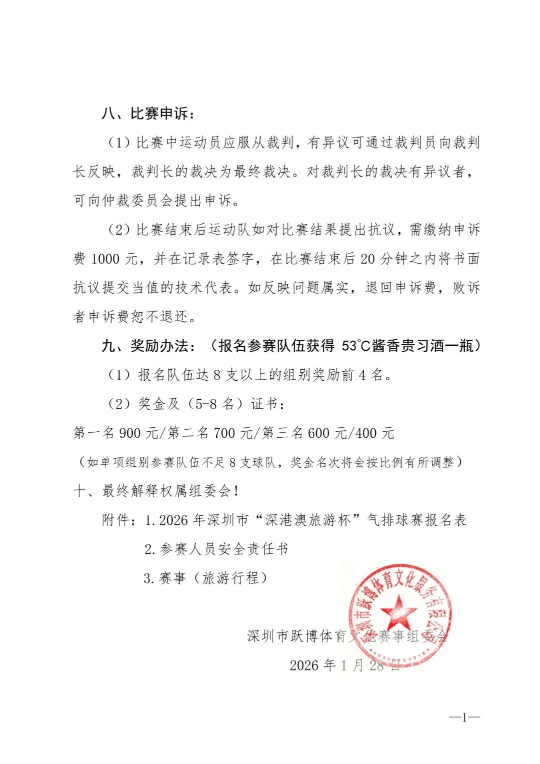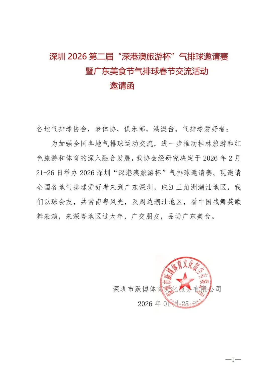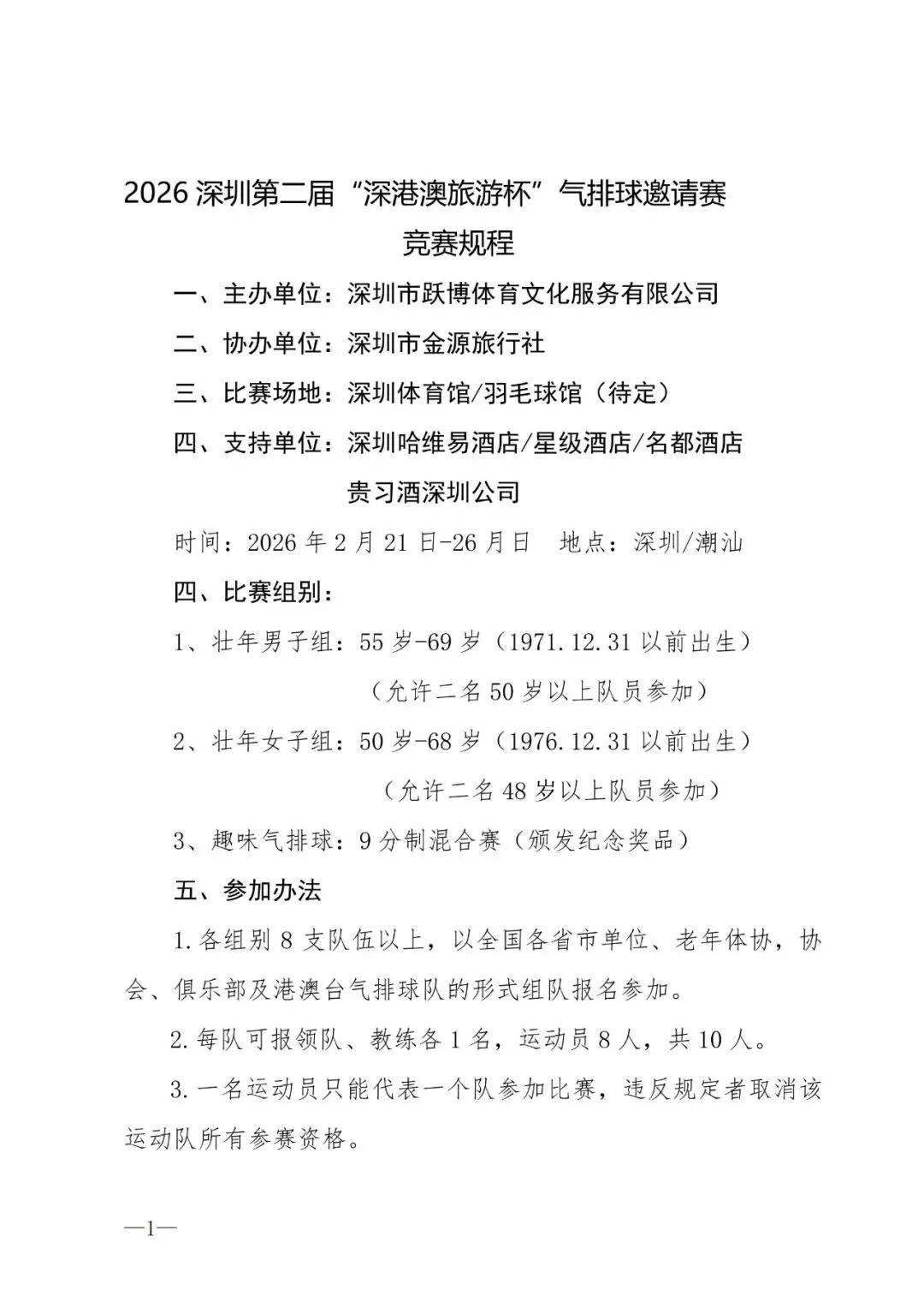 2026深圳第二届“深港澳旅游杯”气排球邀请赛竞赛规程