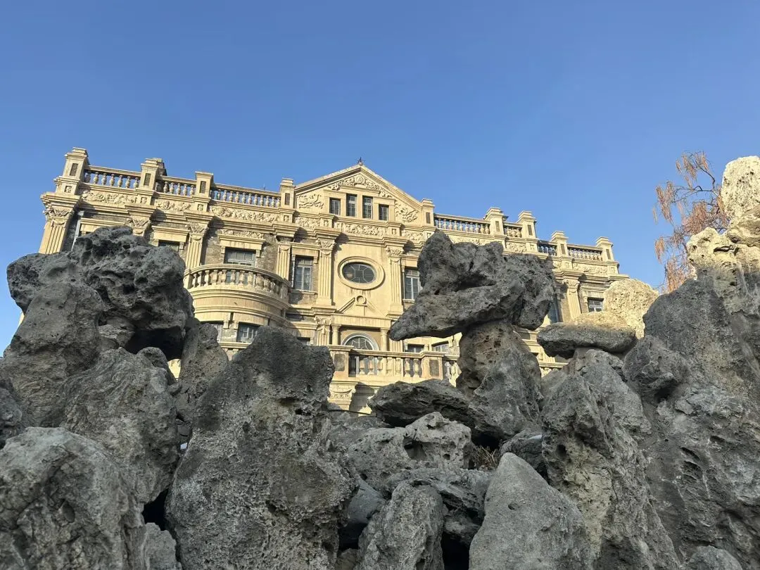 里面在装修只能外面打卡一下,很漂亮,广场上还有大爷大妈在舞龙~