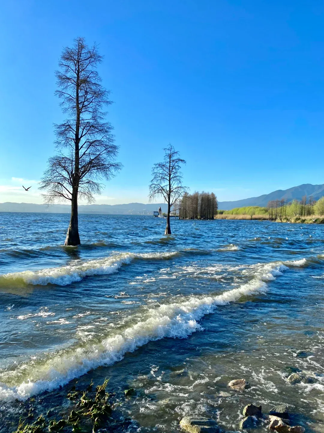 南诏和大理国就在这片水光旁边立国,段氏姓氏名气大,金庸也爱写。