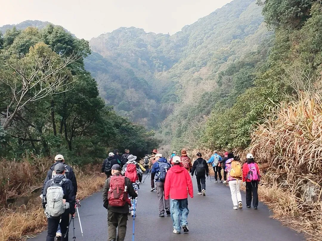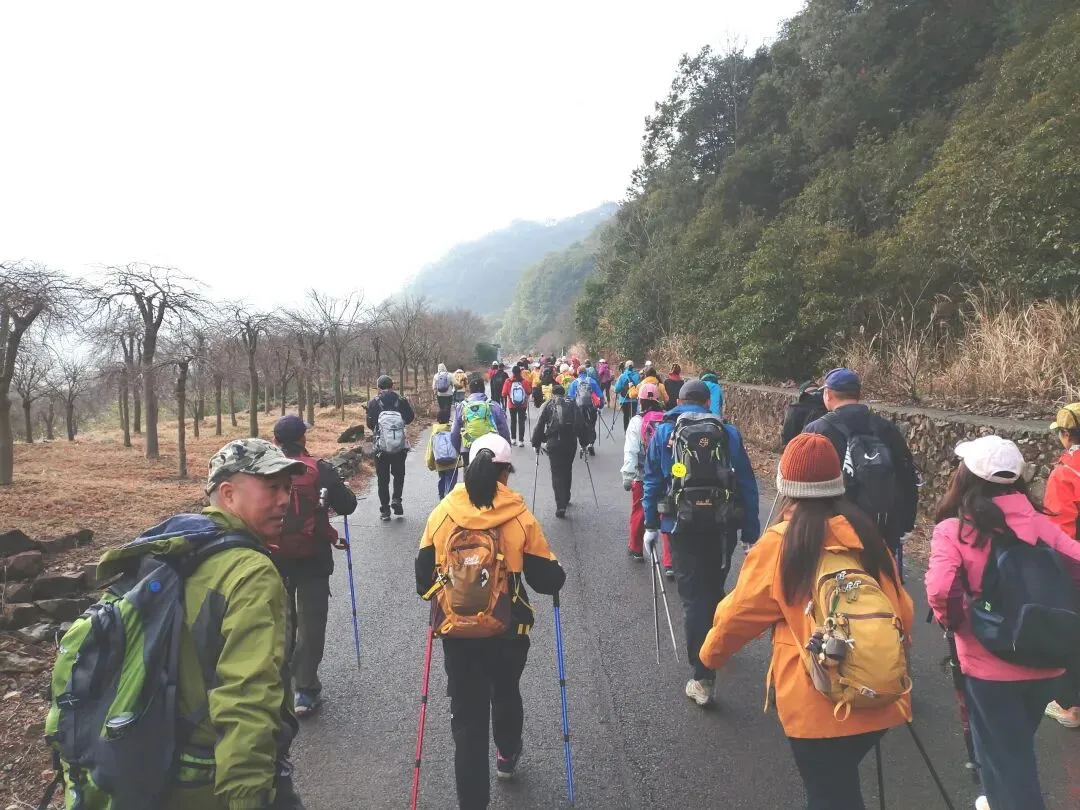 近130驴友参加了今天的九峰之巅行程。坦率地说,自从上周跟着大卫带我们顺利走过了北仑虎头岭,克服了森林防火道60°~80°陡坡,自认为,从此以后,没有什么防火道能够难倒我们了。今天的防火道有专门吓唬人的名字:绝望坡。没走过的驴友,确实是战战兢兢,两腿发抖,小心翼翼地上下。我一看,山道倾斜角不过60°~70°而已,沿最难走的中间部分,靠着双登山杖的支持,轻轻松松地上下绝望坡!