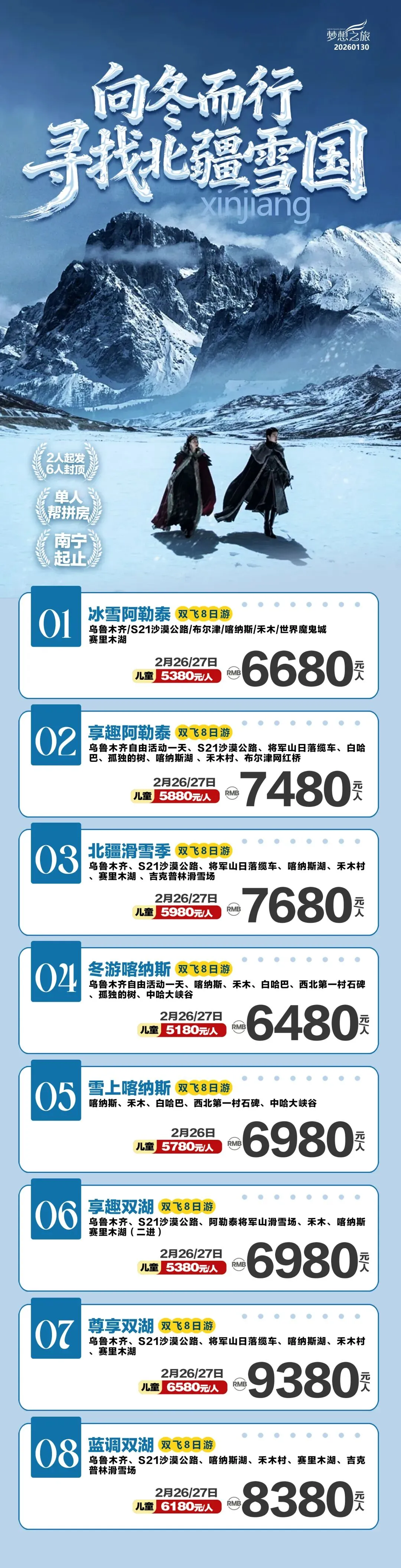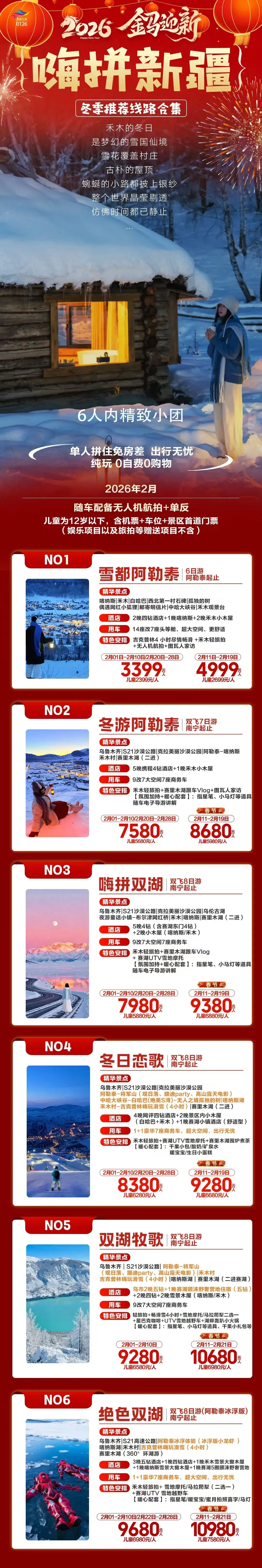 【新疆】2月 春节&寒假 新疆 旅游线路推荐 报名优惠!