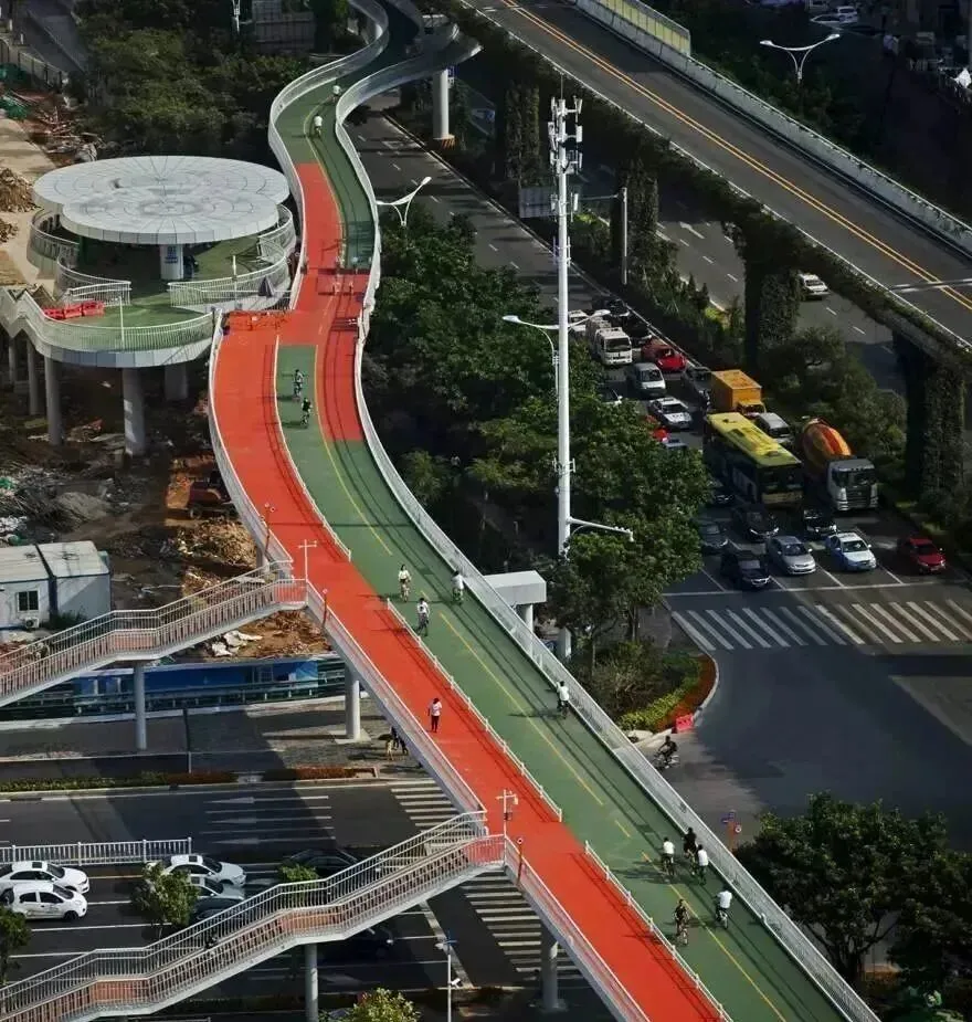 厦门空中自行车道示范段起点BRT洪文站,终点BRT县后站,全长约7.6公里,是全国最长的空中自行车道,沿途可服务瑞景商业广场、瑞景中学、忠仑公园、蔡塘广场、市政大厦、金尚小区、金山小区、市行政服务中心、湖里高新技术园、五缘湾等。