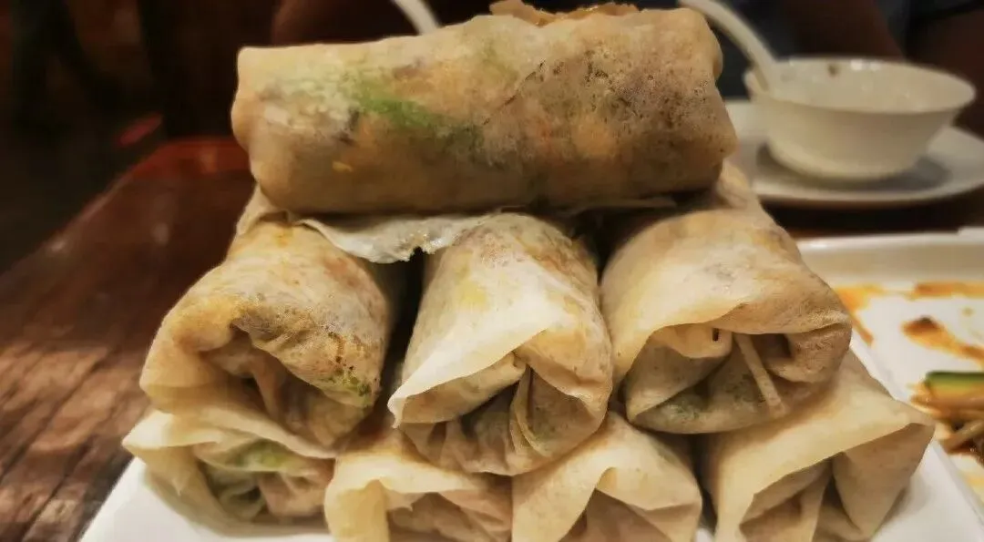 厦门薄饼是福建厦门传统的地方名点,又名春卷、春饼。它是用面皮包着各种菜肴食用,作料主要是笋、豌豆、豆芽、豆干、蛋丝、鱼、虾仁、肉丁、海蛎及红萝卜等。其中豆干丝,越细越好,用油炸过能吸收其中鱼、虾、肉类津液,使饼皮不致被馅的汤弄湿搞破,吃起来脆嫩甘美,醇甜可口。逢年过节,家家户户有吃薄饼的习惯,特别是清明节尤为普遍。