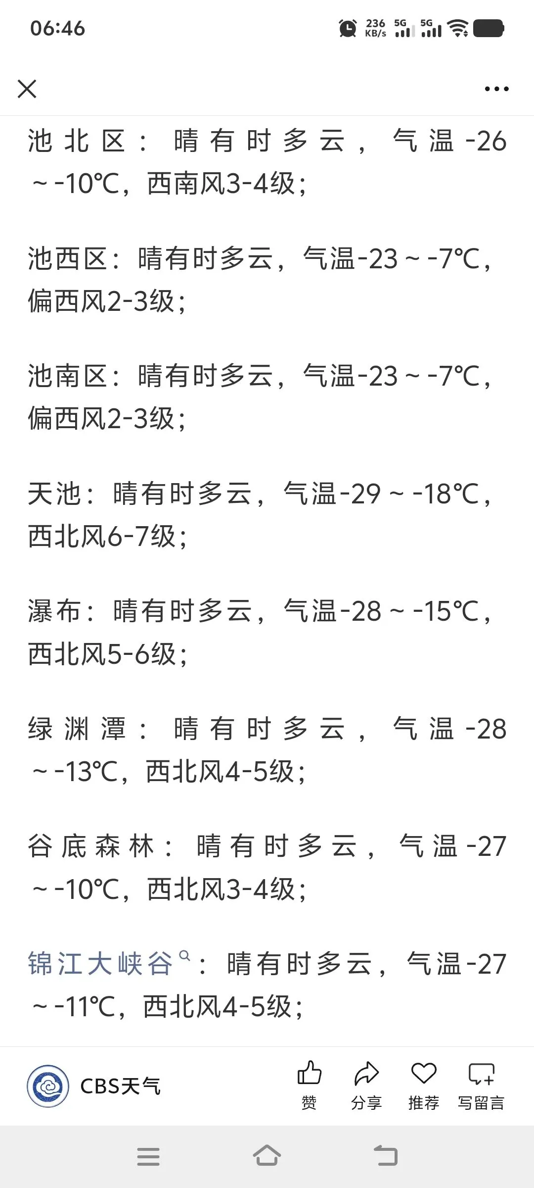 ➡️北景区天池景点,正常开放,视天气情况随时关闭。其他景点正常开放,视天气情况随时关闭。 ➡️西景区天池景点,正常开放,视天气情况随时关闭。粉雪谷、锦江大峡谷景点,正常开放,视天气情况随时关闭。 ➡️南景区关闭。