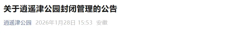 根据重大活动保障安排,三河古镇景区将于2026年1月30日至2月2日实施封闭管理。因重大活动保障需要,逍遥津公园将于2026年1月31日至2月2日实施封闭管理。来源:合肥本地宝;如有侵权,请联系删除。