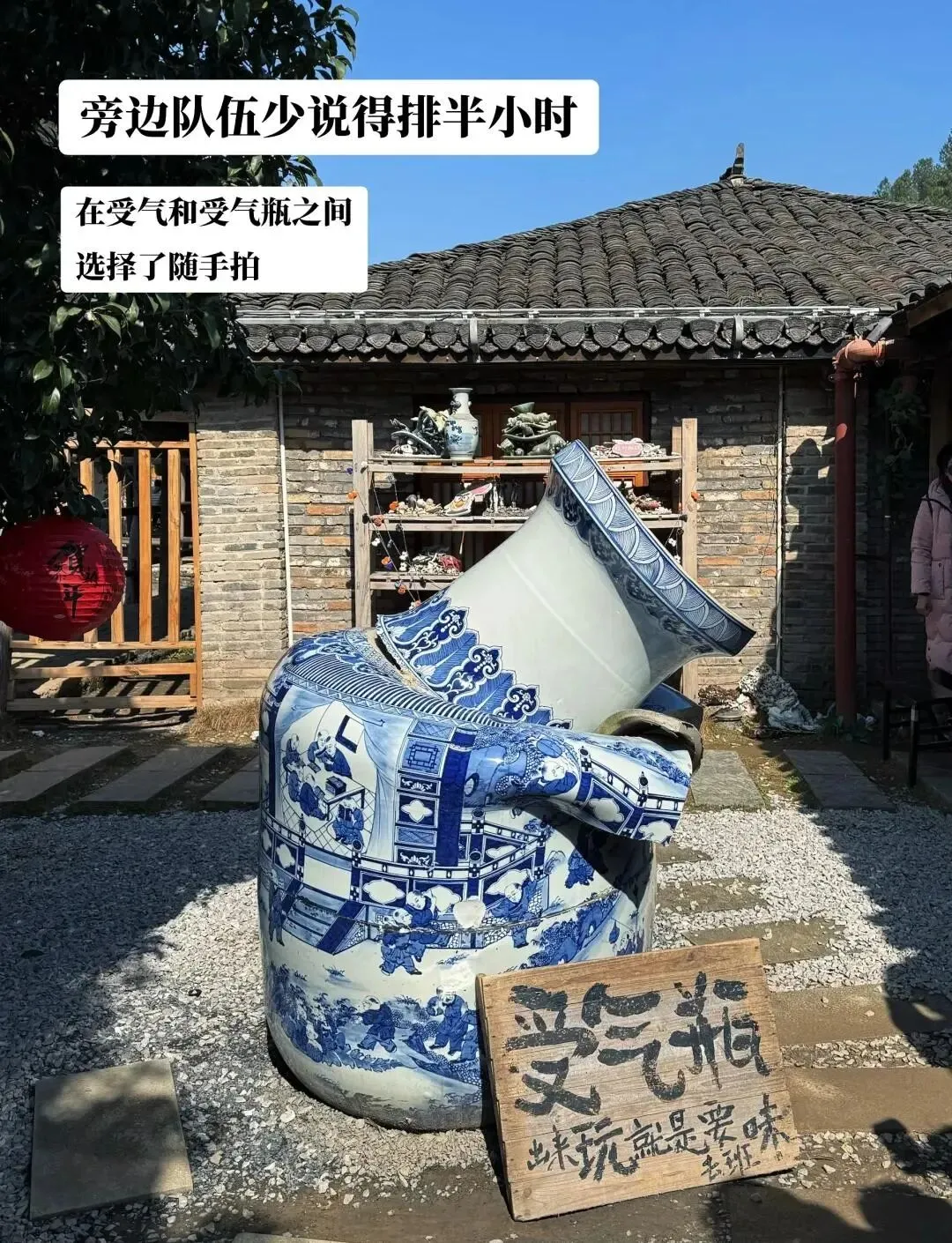 从酒店去中国陶瓷博物馆的路上,经过一个5A景区,从外面看还不错。我就问滴滴司机:“三宝村和这个5A景区好玩吗?”司机很实诚:“我们当地人肯定觉得有啥好玩的,但你们外地人来了肯定是都要体验的。”我们就提到三宝村的受气瓶,听说拍照打卡要排很久的队。