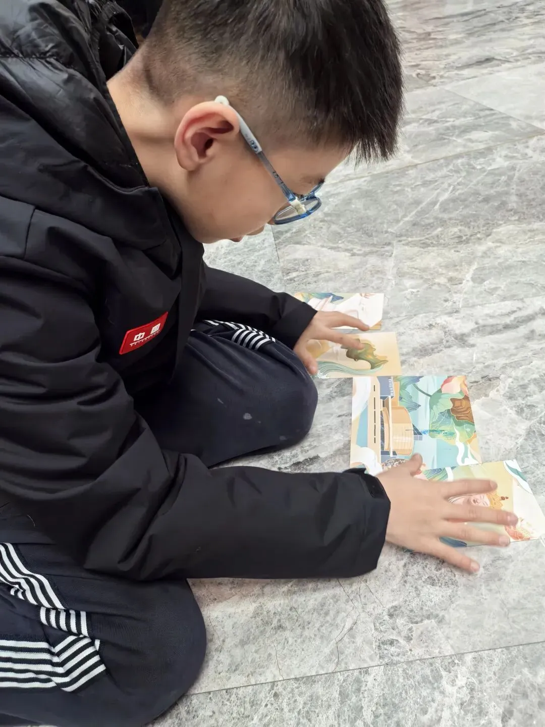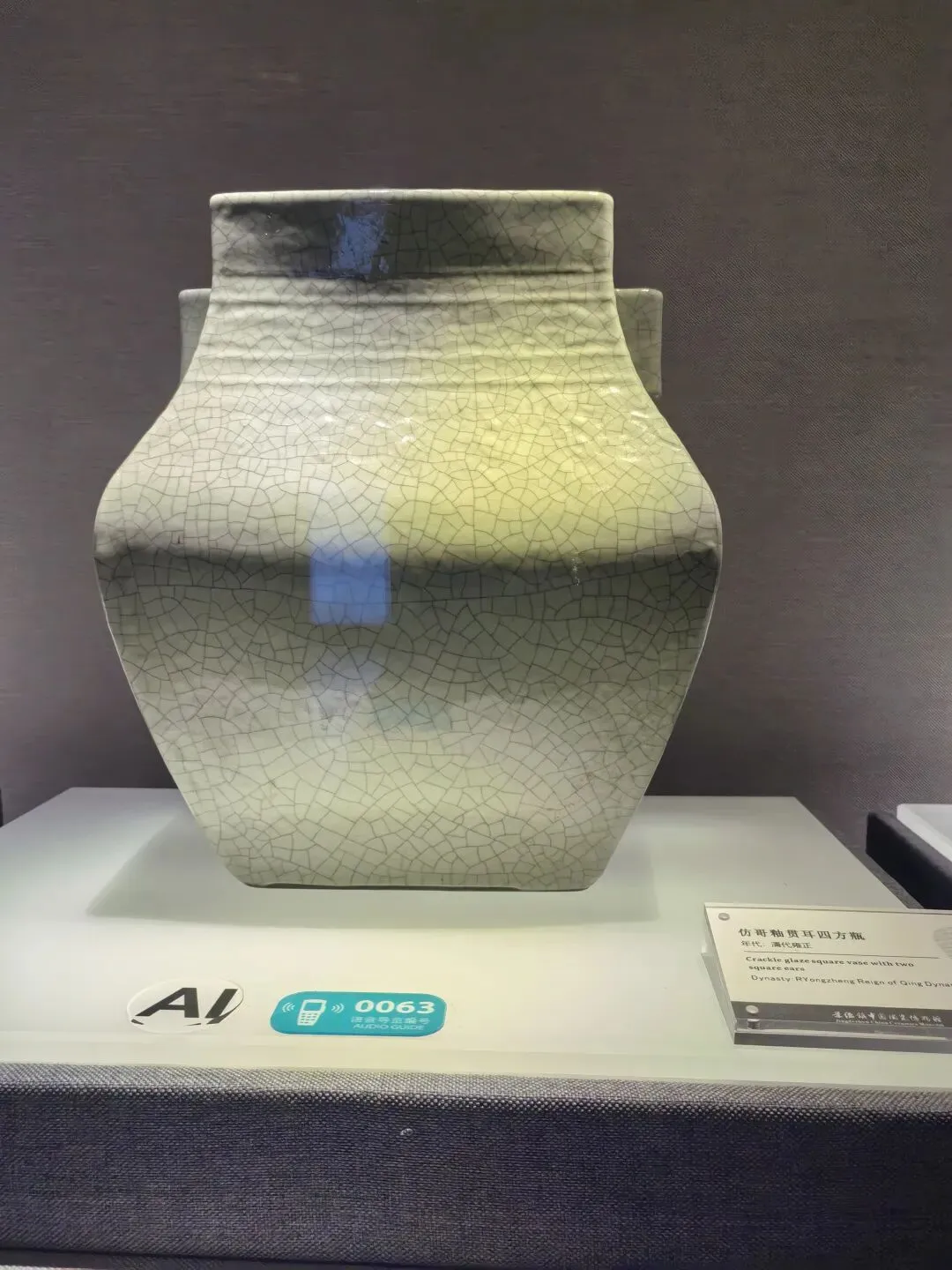 小姐姐讲了很多有趣的小故事,比如“冰裂纹”的由来。以前有兄弟俩章生一和章生二都会烧制瓷器,弟弟因嫉妒而在哥哥的窑炉即将出窑时,泼入一瓢冷水,导致高温骤降,瓷器釉面瞬间炸裂出无数纹路。当章生一痛心开窑,却意外发现满窑青瓷的裂痕如冰晶层叠,交织出一种惊心动魄的残缺之美,这就是哥窑冰裂纹的诞生的缘由。