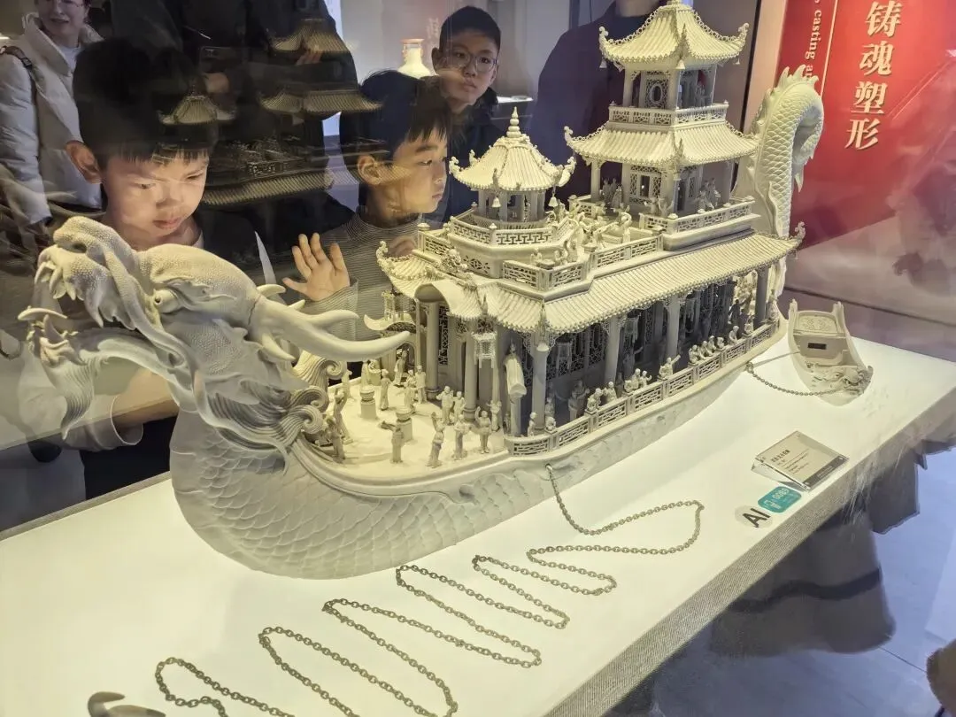 讲解的过程大概1小时,馆里重要的部分都提到了。小姐姐很认真很敬业,真心话,但比起国家博物馆的讲解,有趣借助平板,还有小奖励,中国陶瓷博物馆的讲解要弱多了。真心建议所有的博物馆讲解向国家博物馆学习借鉴下经验,他们会让大人小孩都有收获,都能兼顾,“对于小朋友来说是知新,对于大朋友来说是温故”。让大人和小孩都能真正地走进历史的迷宫,感知厚重的文化底蕴。
