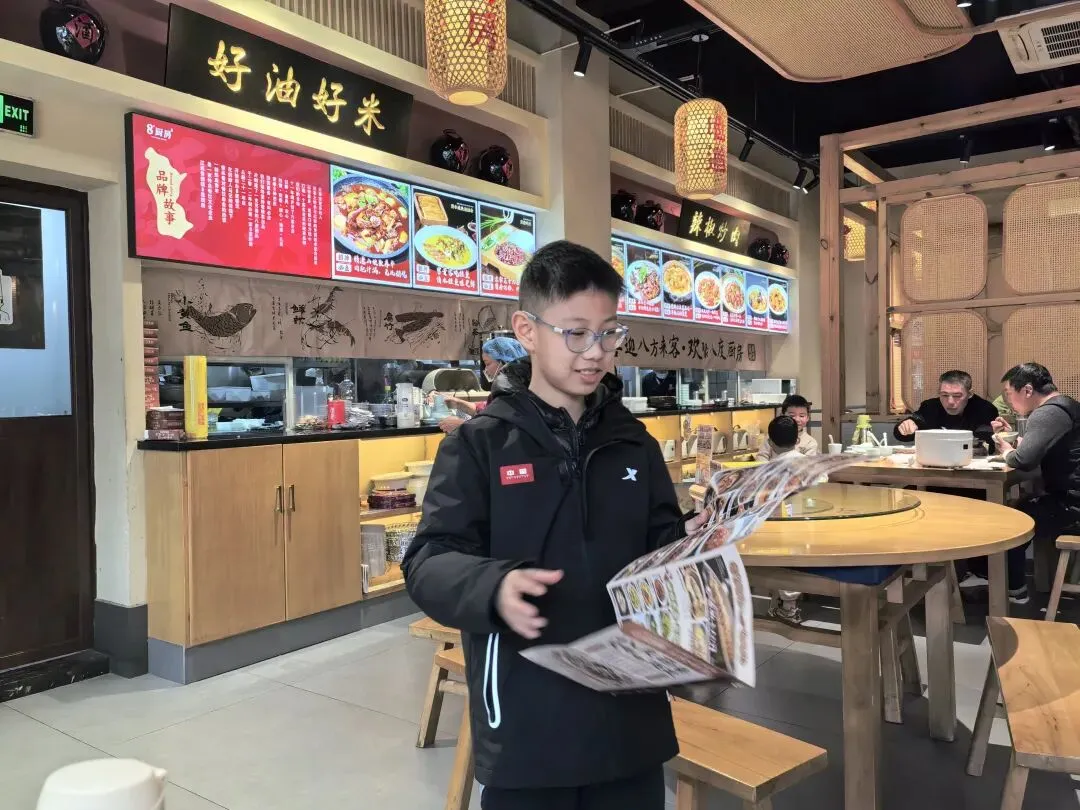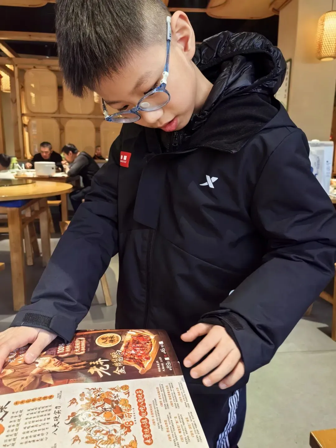 随机选的,没想到一点也不踩坑,总花费84元,结账时服务员热心的说可以用券,最后只支付了77元。一个京酱肉丝,一个井冈山豆皮,一份米饭,一份红豆沙。感觉比景区附近那些网红打卡点好吃多了,来景德镇我力荐这家餐厅。挑食的小朋友,吃完饭研究他家菜单:“妈妈,我要是能吃辣,我得把每道菜都尝一遍!”中午的时候,并不是很热闹的地方,还需要等位子,当地人来吃的也很多。