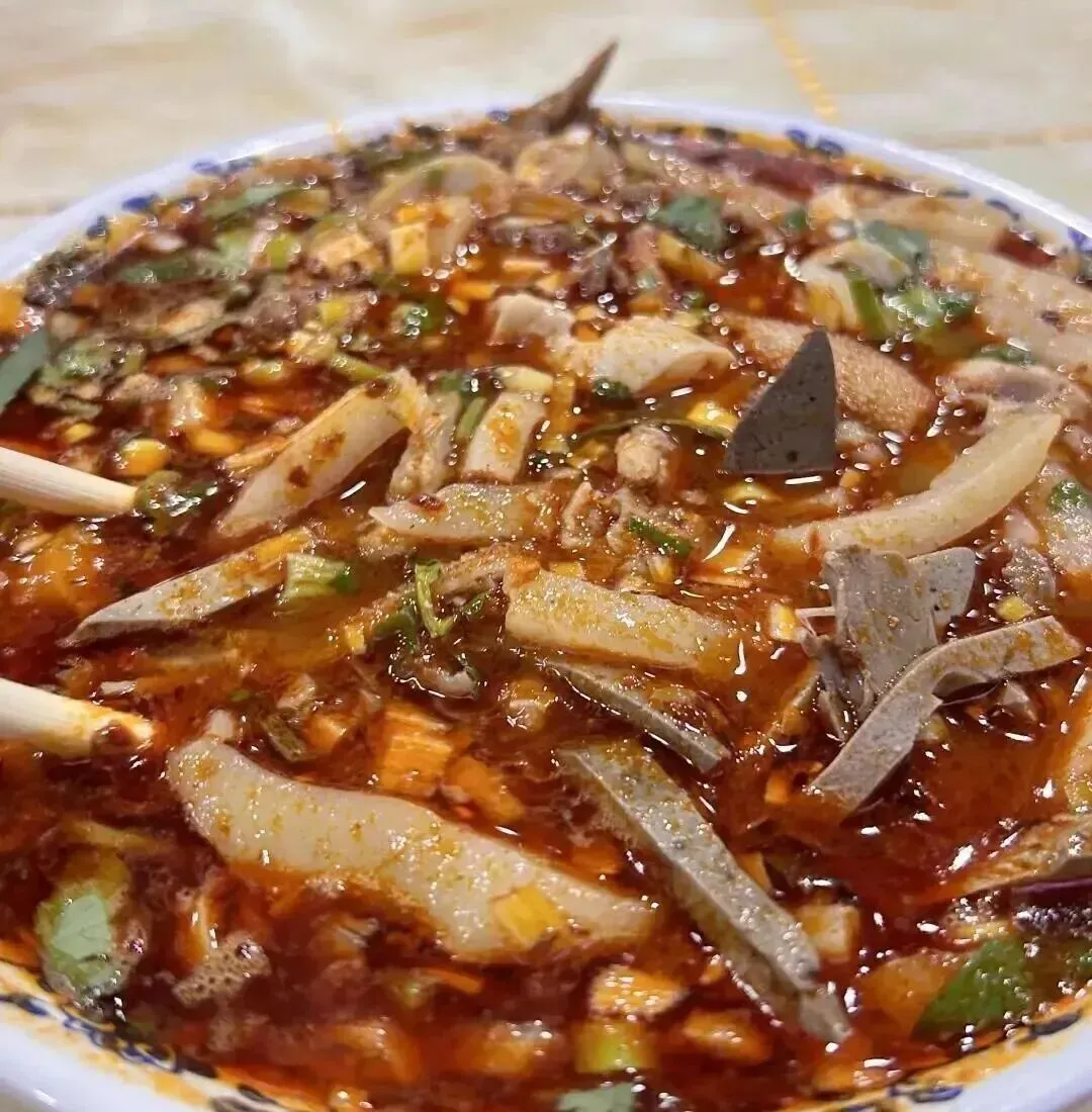 以羊肚、羊肝、羊肺等杂件为主料,经焯煮后用原汤烩制,加入羊油辣子、香菜、蒜苗提味。汤浓肉烂、香辣过瘾,分带肺与纯肉两种风味。作为银川最具烟火气的市井小吃,亦入选“中国地域十大名小吃”,深受本地人与游客喜爱。