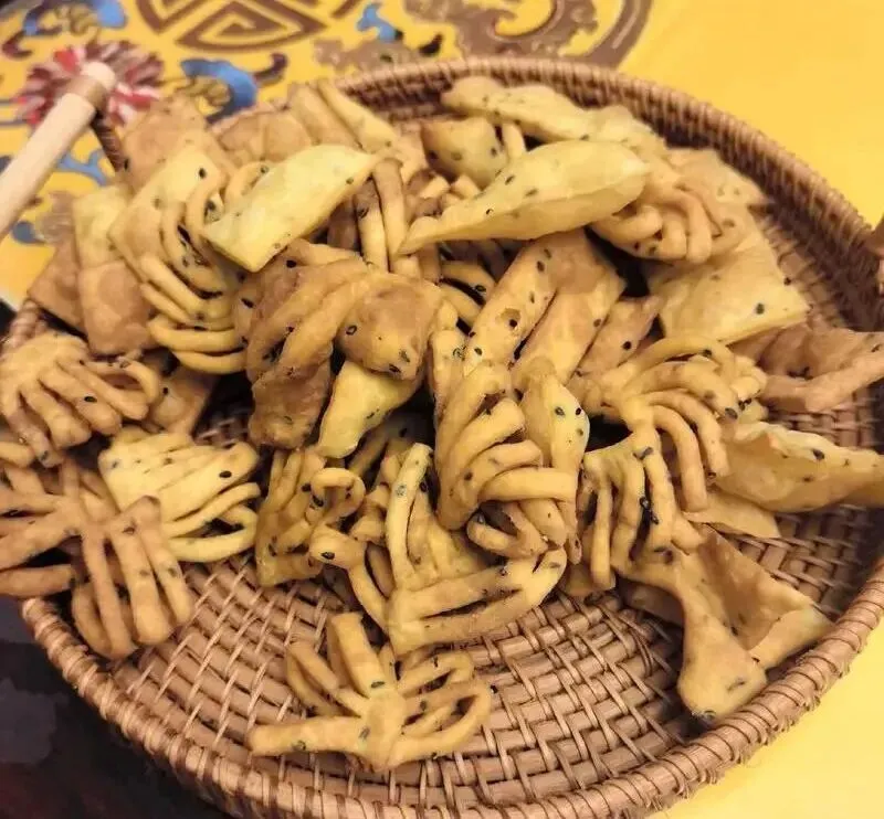 银川回族传统节庆点心,用面粉、白糖、植物油炸制成宝塔、花鸟等30余种造型,形如工艺品,色呈浅黄,酥脆香甜。相传源自阿拉伯,经本土化改良后成为节日馈赠佳品,兼具观赏性与美味,极具民族特色。