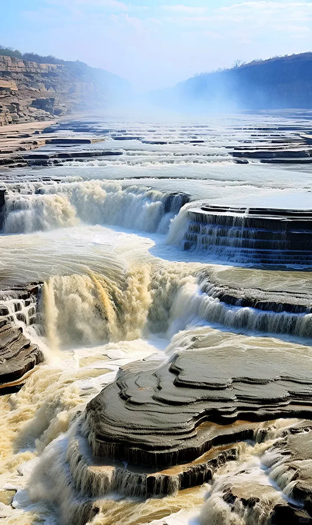 黄河奔涌坠深潭,怒吼如雷,气吞山河