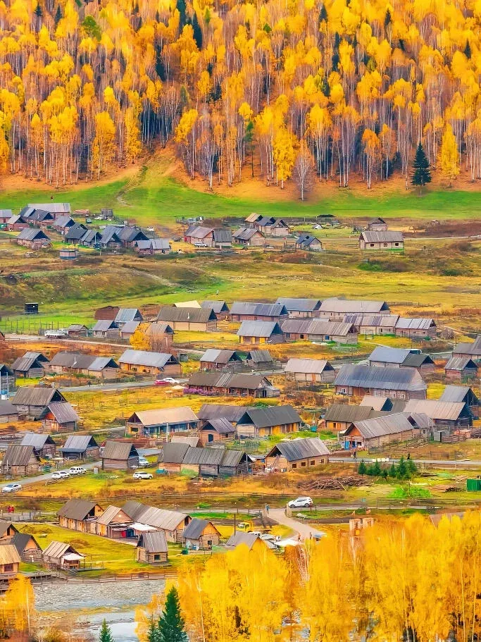 雪山湖泊与金黄桦林共绘的“神的后花园”