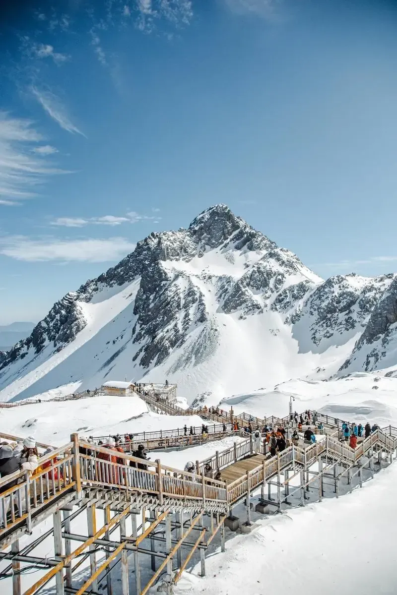 十三峰如银色巨龙腾跃,冰川遗迹与纳西文化交融