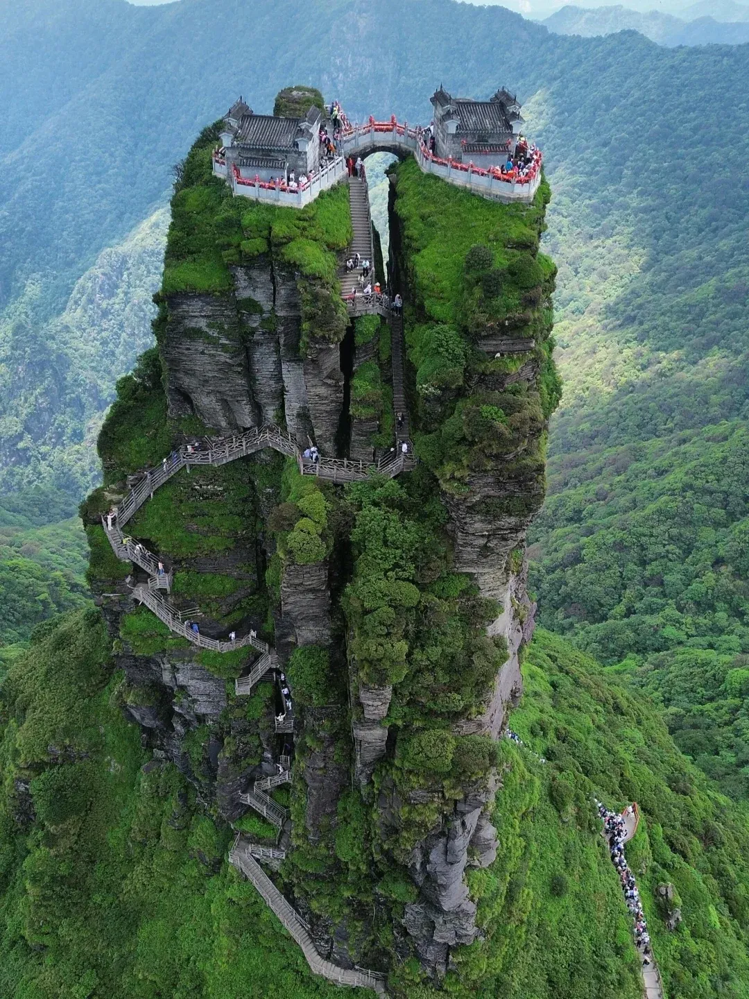 云海缭绕的“天空之城”,蘑菇石与金顶演绎自然造化