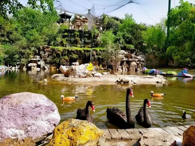 如果说许慎文化园是安静的修行地,那神州鸟园就是孩子们的天堂。我去的时候正值春季,孔雀部落里,上百只蓝孔雀开屏争艳,尾羽上的眼状斑纹在阳光下闪烁着宝石般的光芒。鸟语林里,相思鸟、画眉、八哥的歌声此起彼伏,我买了一包鸟食,瞬间被一群小家伙包围,它们落在我的手上、肩上,叽叽喳喳地讨食,可爱极了。