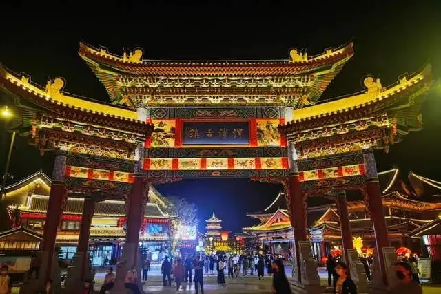 华灯初上时,漯湾古镇迎来了它最美的时刻。1500 亩的园区里,明清风格的古建筑群在灯光的映衬下,显得格外迷人。文峰塔高约 30 米,共 7 层,登塔远眺,整个古镇的夜景尽收眼底,青砖黛瓦、飞檐翘角,宛如一幅流动的水墨画。