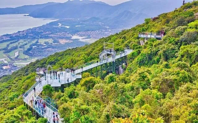 山顶有玻璃栈道 , 能俯瞰整个亚龙湾 , 海天一色 , 值回票价。