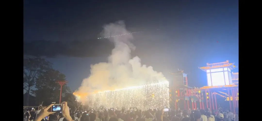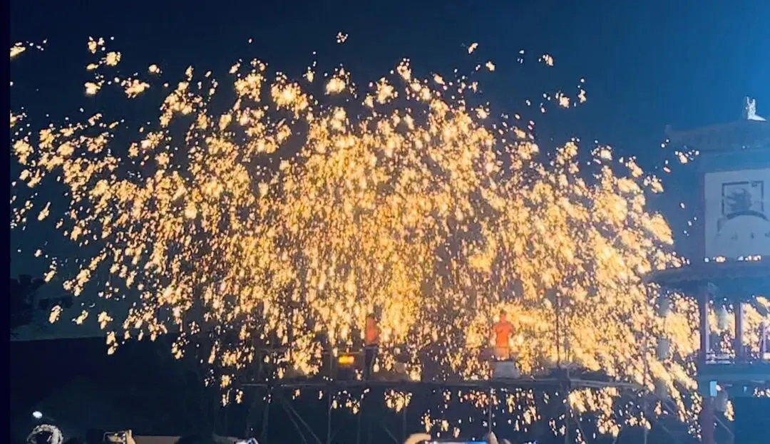 打铁花、灯光秀古代人民与现代人民智慧碰撞上演视觉盛宴。(南城门也有灯光秀)