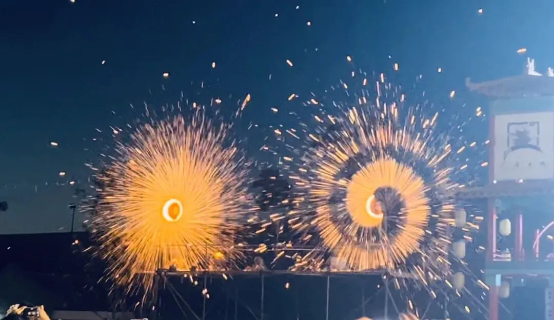 夜晚华灯初上,仿佛来到了另一个世界。打铁花、灯展、歌舞表演将我们带入了现代。