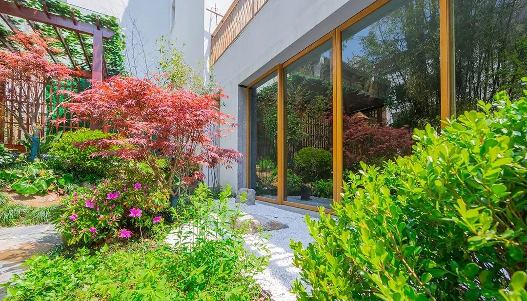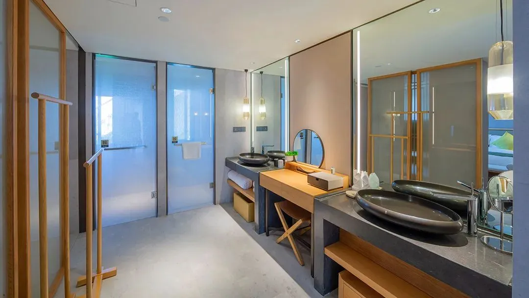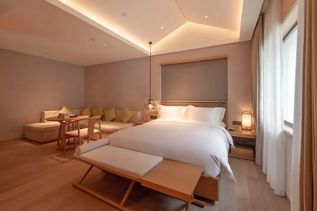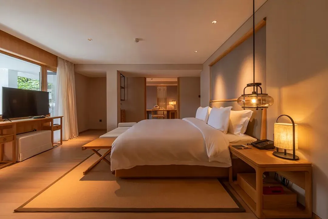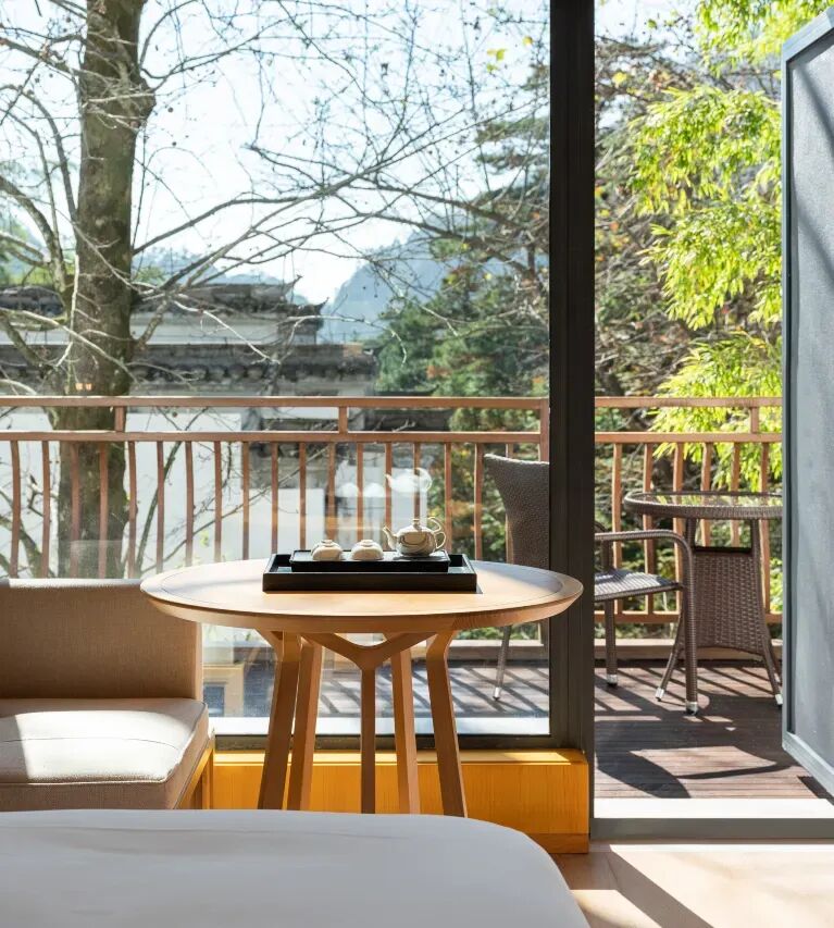 酒店四周更是群山、云雾围绕,风景清奇秀丽,自然底蕴浓厚。四时美景,观山望月,赏花听雨,住进来人也成了自然的一部分。