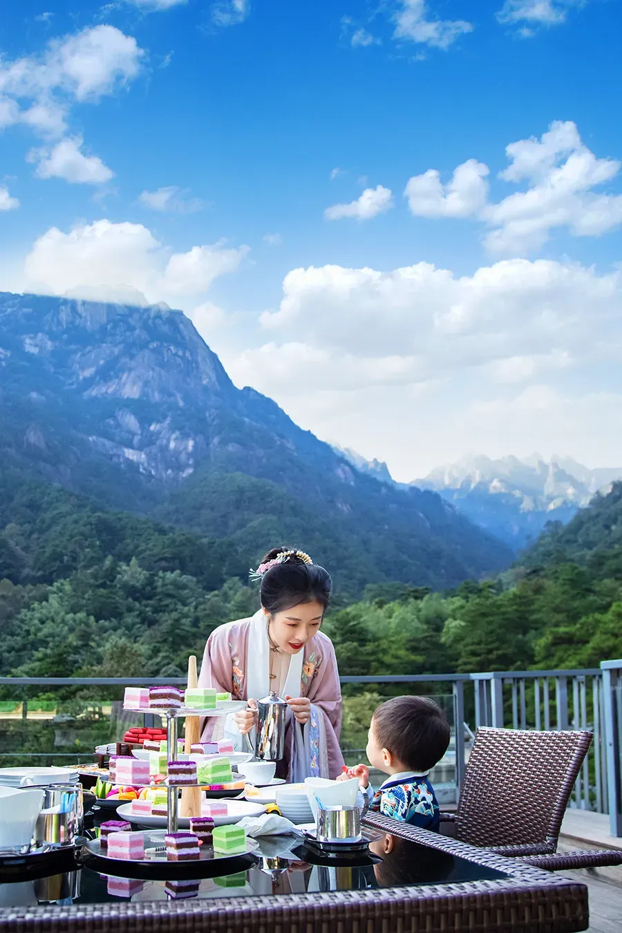 *酒店不远处有一条竹林古道,古道尽头便是黄山第一大瀑—九龙瀑。还设有茶道、汉服、手工制作等超多活动可以体验!
