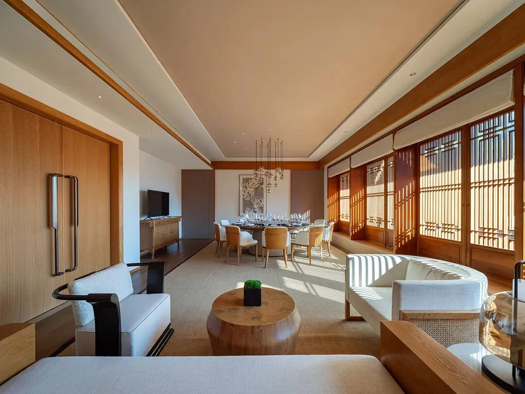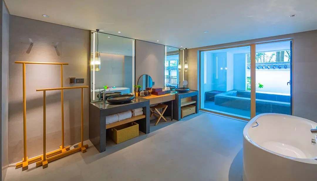 在保存原来整体建筑的前提下,将徽州文化、养生文化以及国学文化植入其中,以轻奢自然的方式,再现徽派风华,并力求打造成为具有国际水平的国牌度假酒店!