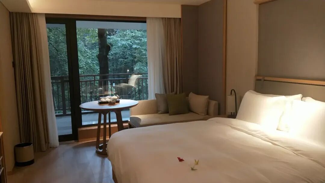 *酒店位置很好,环境设施不错,服务人员态度好,贴心!下午入住后全家在酒店泡了温泉,晚上在酒店用餐,味道相当好,性价比也高,推荐!早餐也很精致,早饭后在附近古道散步,呼吸新鲜空气,很棒的体验!