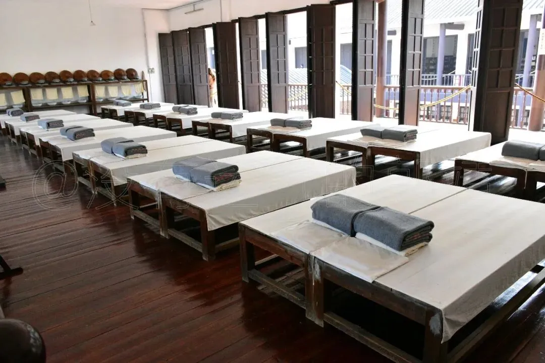 二楼是学员宿舍,布置得更简单了。一张张木板床,每张床上都铺着灰色军被,叠得方方正正,跟豆腐块似的。