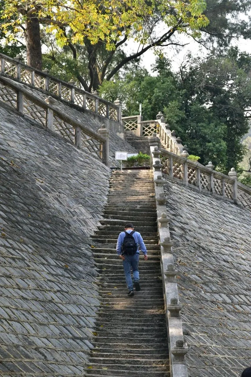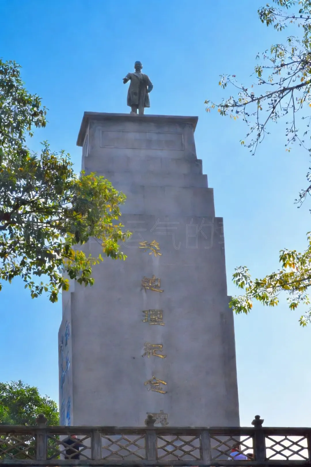 从大礼堂出来,向靠边的山路往上走,就到了孙总理纪念碑。