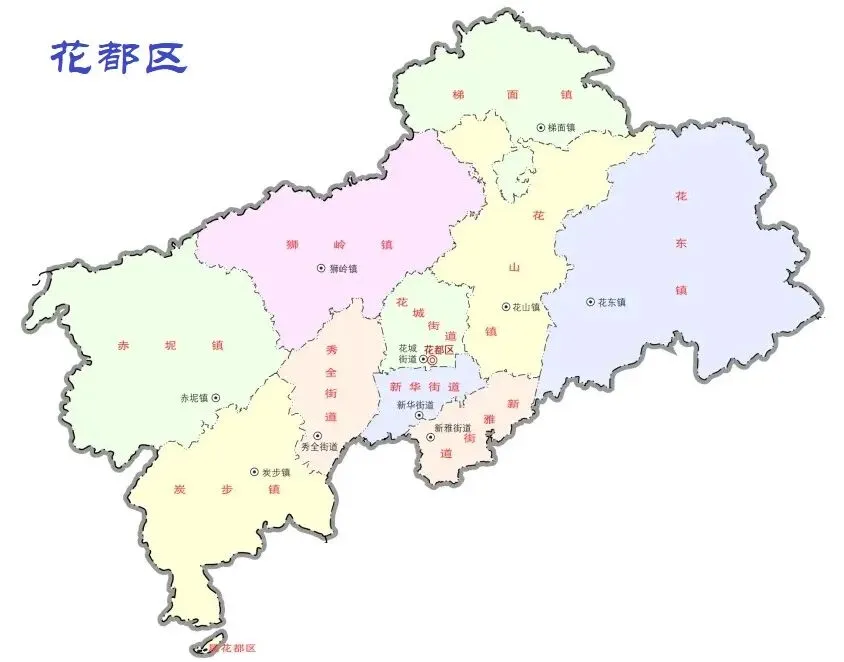 花都区辖4个街道:新华街道、花城街道、秀全街道、新雅街道;6个镇:狮岭镇、花东镇、花山镇、炭步镇、赤坭镇、梯面镇。区政府驻市桥街道。