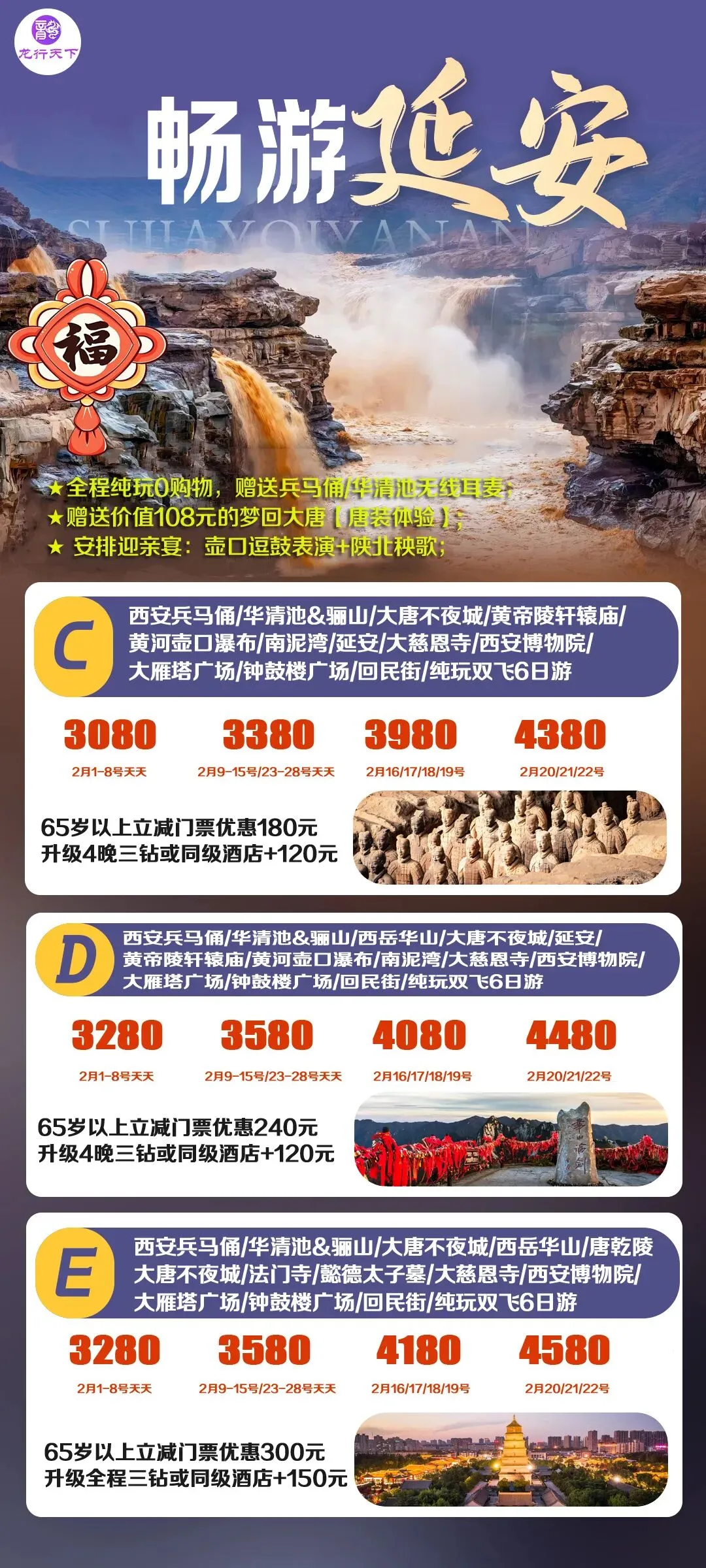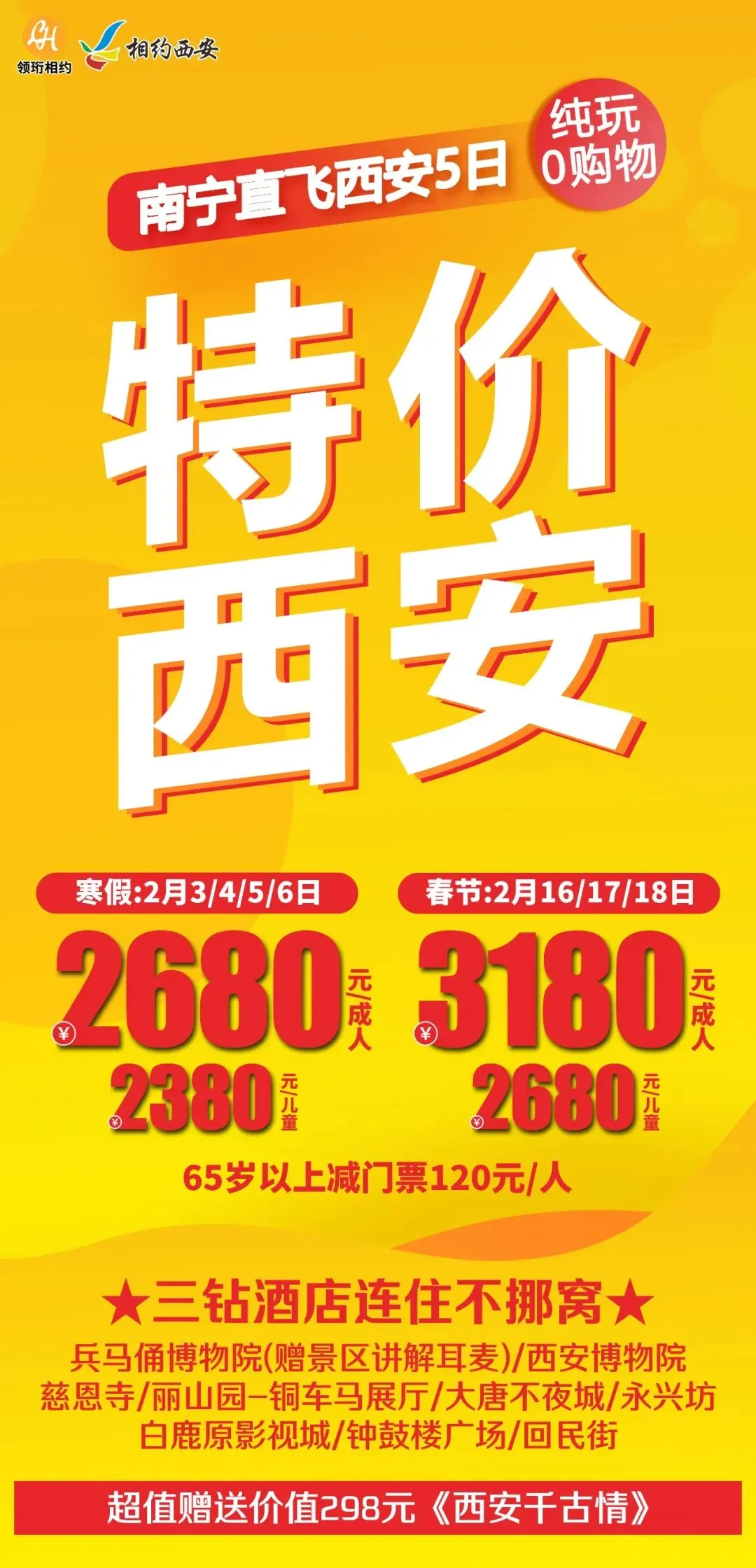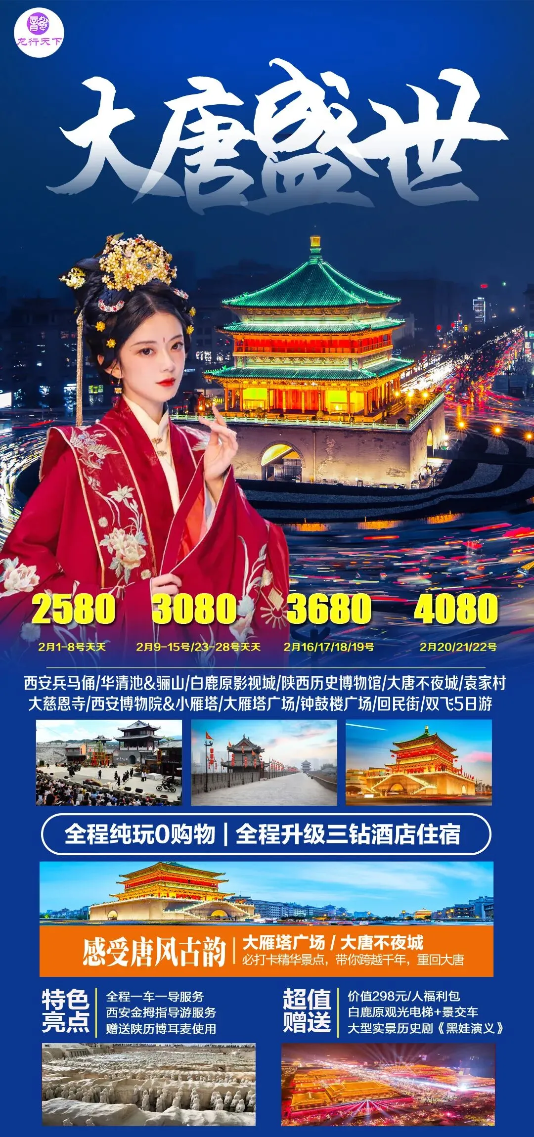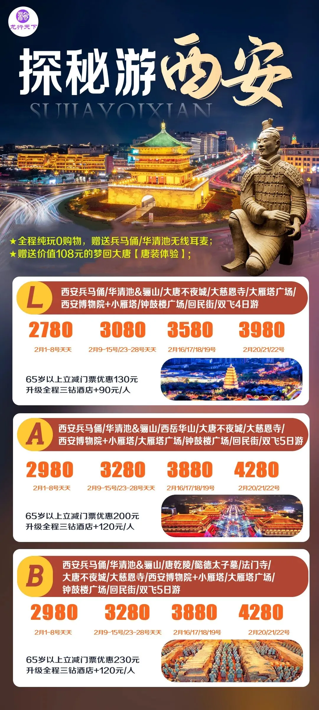 【西安】2月 春节&寒假 西安 旅游线路推荐 报名优惠!