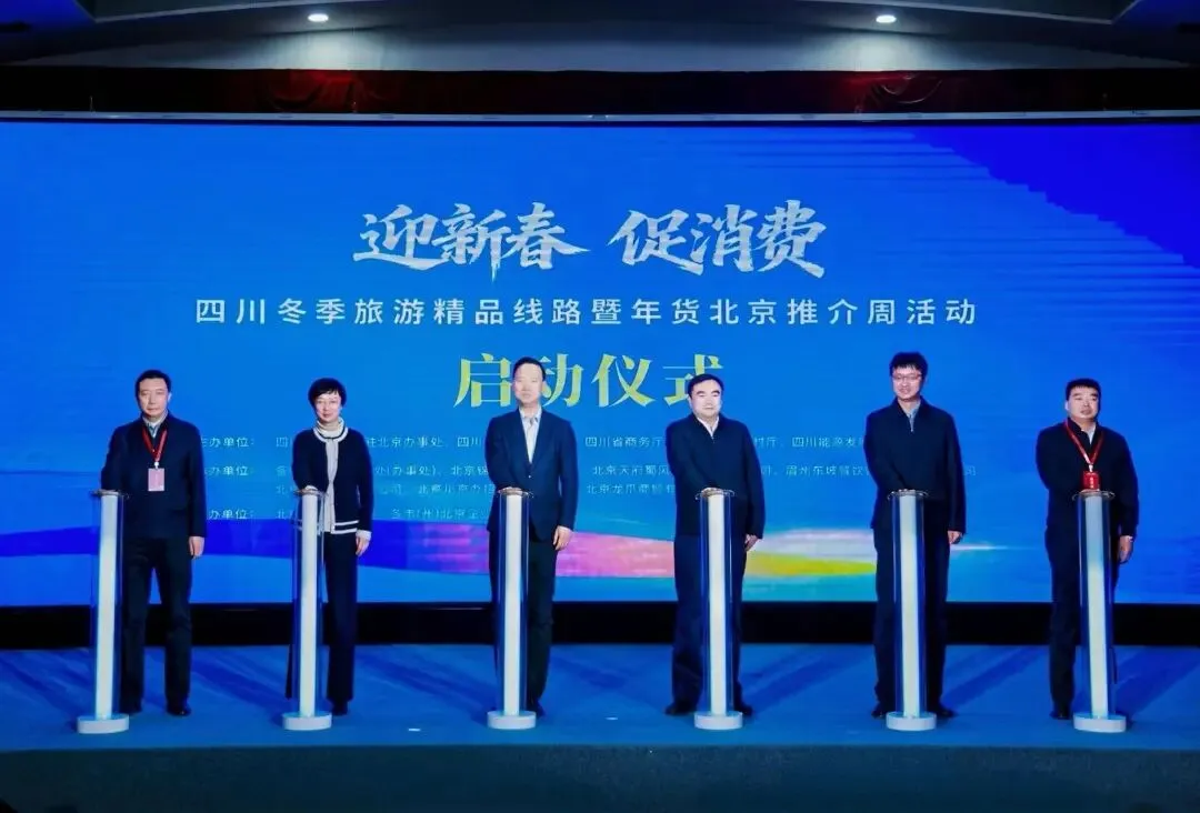 2026年2月1日,“迎新春 促消费”四川冬季旅游精品线路暨年货北京推介周活动在北京拉开帷幕。活动向首都市民发出“马上入川 蜀里过年”的热情邀请,带来天府之国冬季的别样风情与地道的“川字号”年味。 本次活动由四川省人民政府驻北京办事处、四川省文化和旅游厅、四川省商务厅、四川省农业农村厅和四川能源发展集团等单位共同主办,由各市(州)驻京联络处(办事处)、北京锦华控股有限公司、北京天府蜀风酒店有限责任公司、眉州东坡餐饮管理(北京)有限公司、北京华川经贸有限公司、北京川京办招待所有限公司、北京龙爪商贸有限公司承办,由北京四川企业商会、各市(州)企业商会协办。北京四川企业商会会长刘东海、秘书长李雄代表商会出席本次活动。