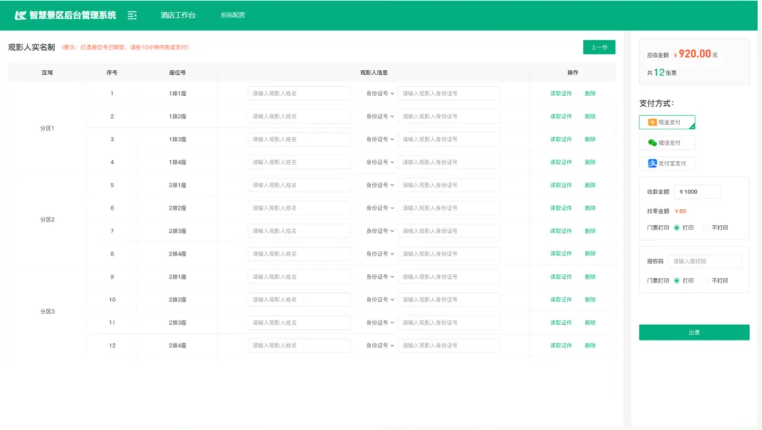 强实名购票与入场:支持 “购票时绑定身份证/人脸”,入场时人脸识别或身份证核验,确保人、证、票一致。