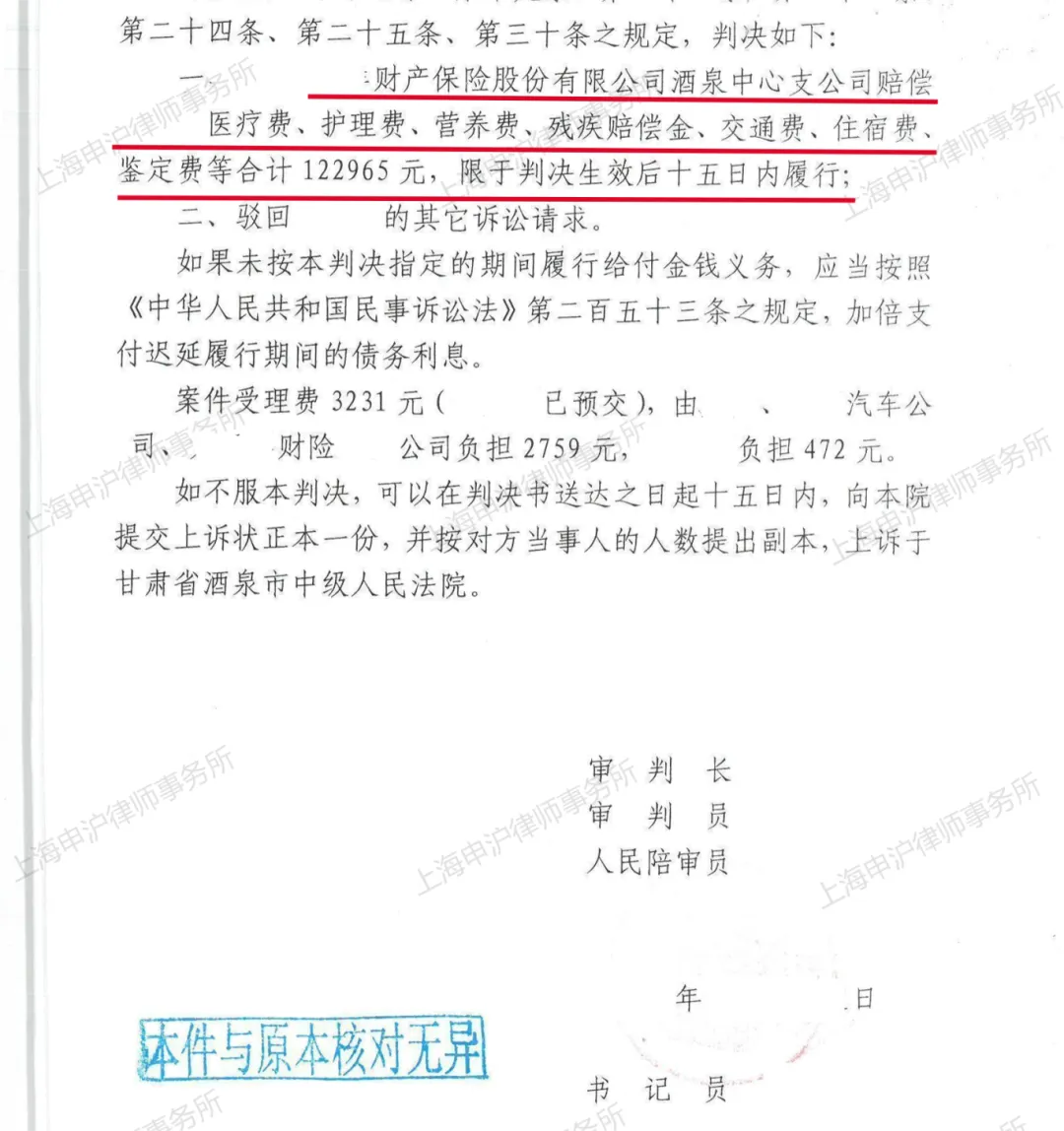 最终,经法院审理查明,采纳了申沪律师的部分代理意见,判决:
