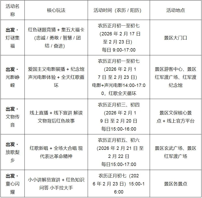 红军渡景区2026年迎新春“出发”系列活动公告