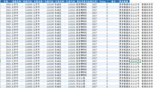 本数据参照Zeyi He,Zhi-An Hu,Wei Huang,Yankun Kang(2025)的研究设计,基于中国5A级旅游景区评定数据与中国县以上行政区划代码构建“区县5A旅游景区政策冲击评估数据集”,即通过多阶段数据清洗与匹配方法提取标准化政策变量与结果变量,最终输出结构化的“景区-年份”长面板数据。该数据集包含了景区基础信息、标准化行政区划代码、时间标识以及核心的政策处理变量(Policy),为后续运用多期DID、事件研究法等计量模型,严谨评估5A景区评定对县域旅游经济、人力资本等多元结果的因果效应提供了规范、可靠的数据基础。