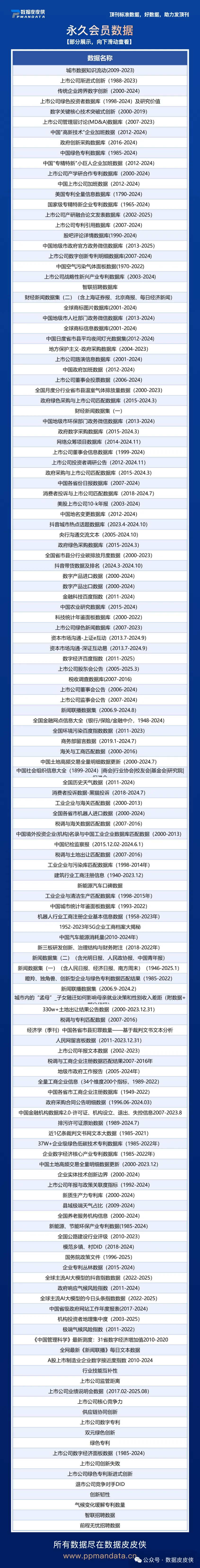 CNPaperData(简称CNPD)是立足大规模数据采集、清洗、挖掘的国家高新技术企业,借鉴Compustat、WRDS等国际知名数据库及FT50期刊专业标准,打造中国特色经济管理社会科学研究型数据库。涵盖上市公司、企业、省份、地级市、县域、高校、人物等研究对象,涵盖经济、法律、金融、政策、科技、文化、健康、环保、人口等各类热门数据。顶刊标准数据,好数据助力发好刊!获取数据地址ppmandata.cn/trade/list
