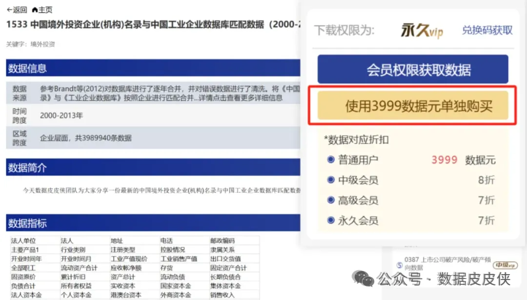 2.非高级会员或永久会员搜索对应编号后在网页右上角通过数据元单独购买
