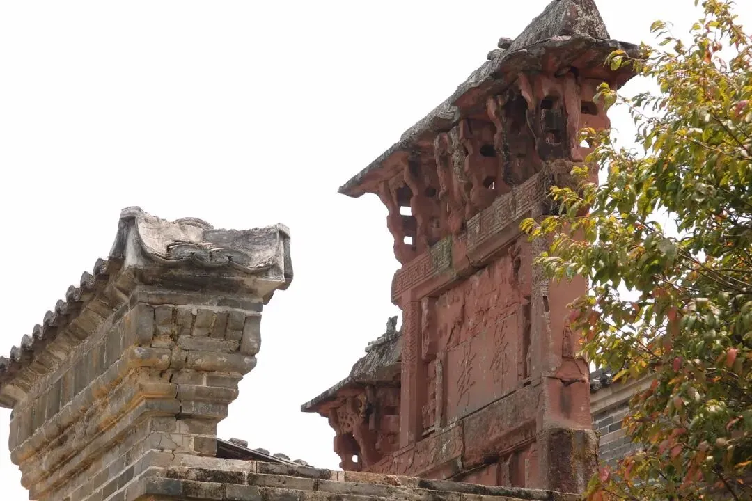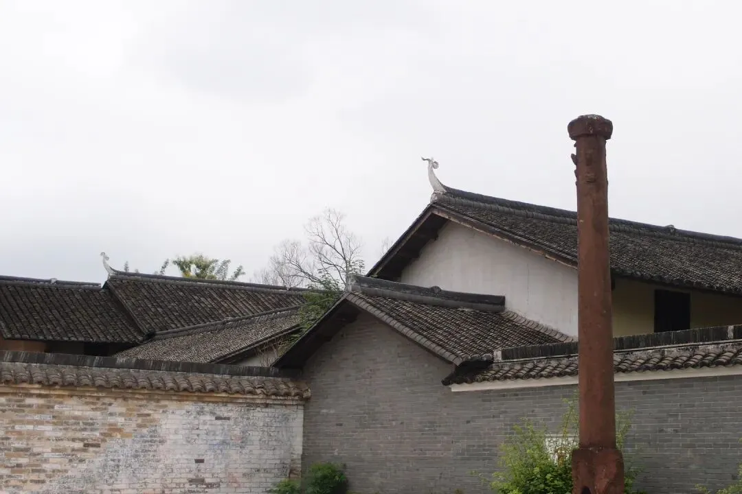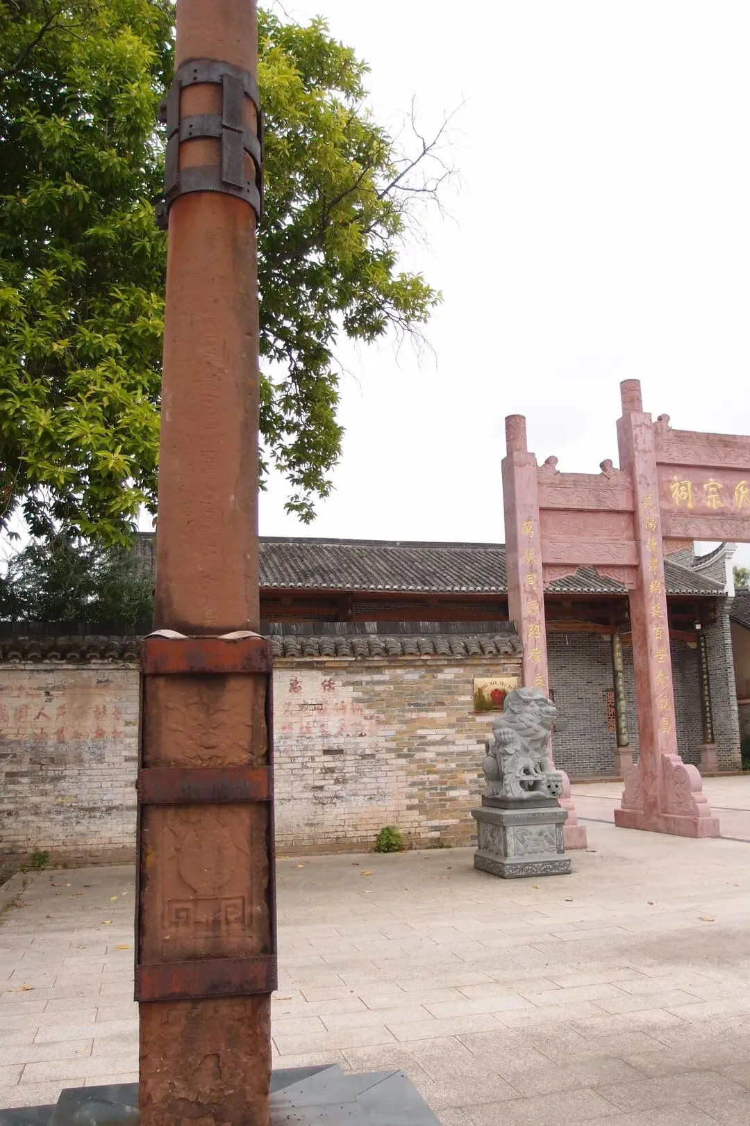 这里的祠堂前还保留着古代的华表,