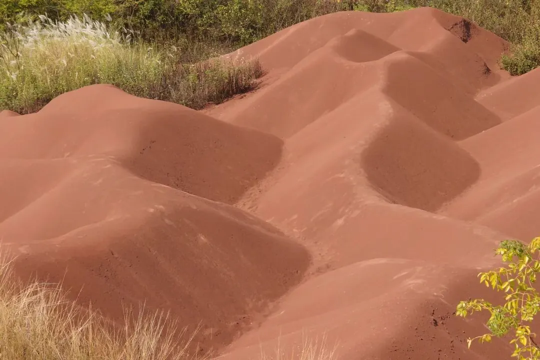 邱边红沙丘,这个是丹霞地貌彻底风化的结果。