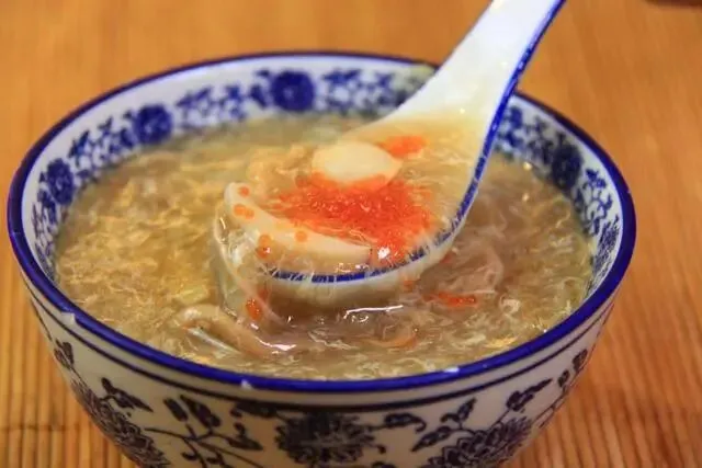在香港街头碗仔翅可是一道特别常见的美食,其实它是一道仿鱼翅的汤羹。碗仔翅的主要食材其实是粉丝,将淀粉熬制浓稠,加入生抽老抽,麻油,辣椒油等调料,也可以加入其他的食材,比如冬菇,猪肉丝,鸡肉,腐竹皮等,用小碗盛好,吃上一口浓郁香滑,吃起来有一种燕窝的口感。